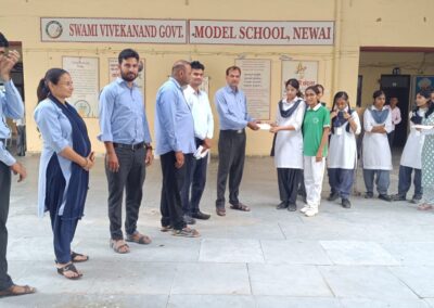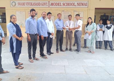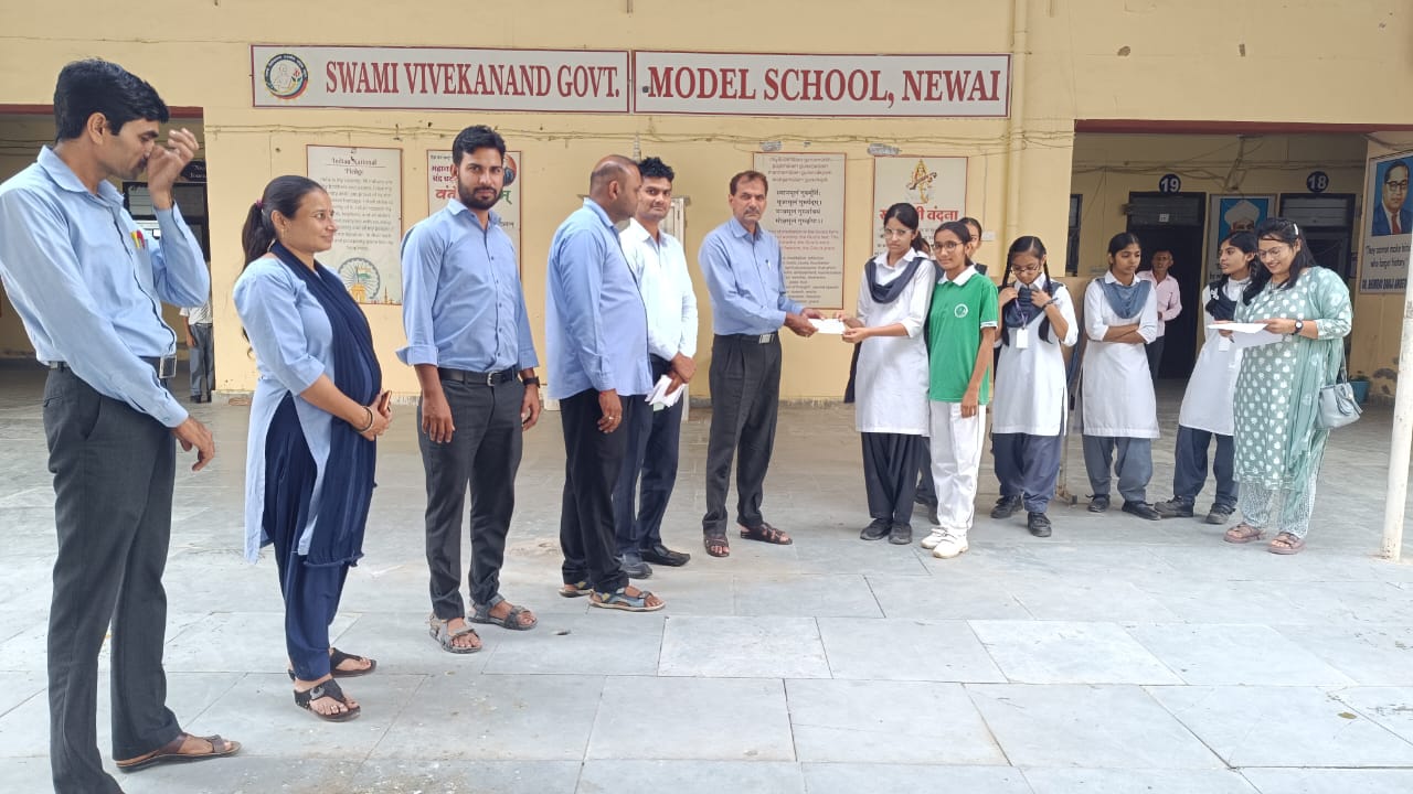 भारतीय मानक ब्यूरो द्वारा स्वामी विवेकानंद राजकीय मॉडल स्कूल निवाई में हस्तलिपि एवं पोस्टर मेकिंग प्रतियोगिता का आयोजन किया गया। प्रधानाचार्य कुमाराम चौधरी ने बताया कि स्पर्धा में कक्षा 9 से 12 तक के लगभग 70 विद्यार्थियों ने भाग लिया जिसमें हस्तलिपि प्रतियोगिता में सारांश राजावत और भविष्य शर्मा प्रथम रहे